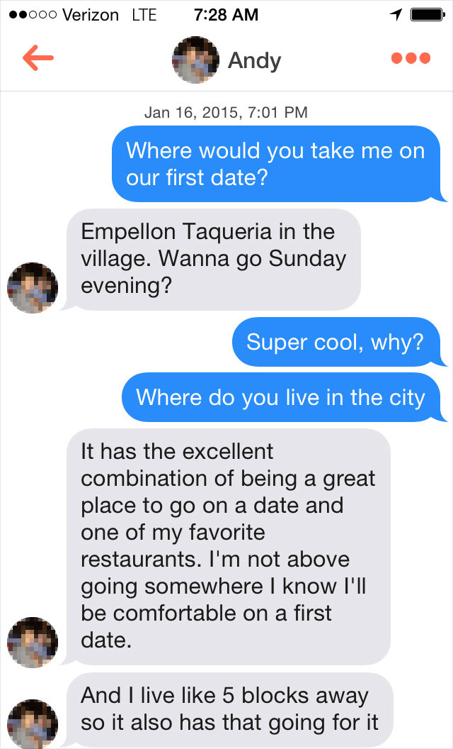 This might be the best question to ask on tinder. Just tell her you are busy and will talk later. Obviously, you don't want to seem overeager. So, if you want to find out in a discreet way how to spot a bad egg, here are questions you should ask your tinder match. He encourages daters to ask unexpected questions on their first date, and we couldn't agree more.